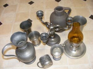 L’étain concerne quant à lui des objets anciens, de la vaisselle ou des pièces en étain massif ou semi-massif. Il s’agit d’un métal recyclable, à condition que l’alliage soit correctement identifié.